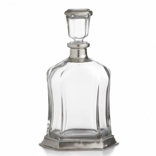 This elegant decanter will add a distinguished air to any occasion. Italian pewter and glass, Hand made in Italy. Hand wash only.