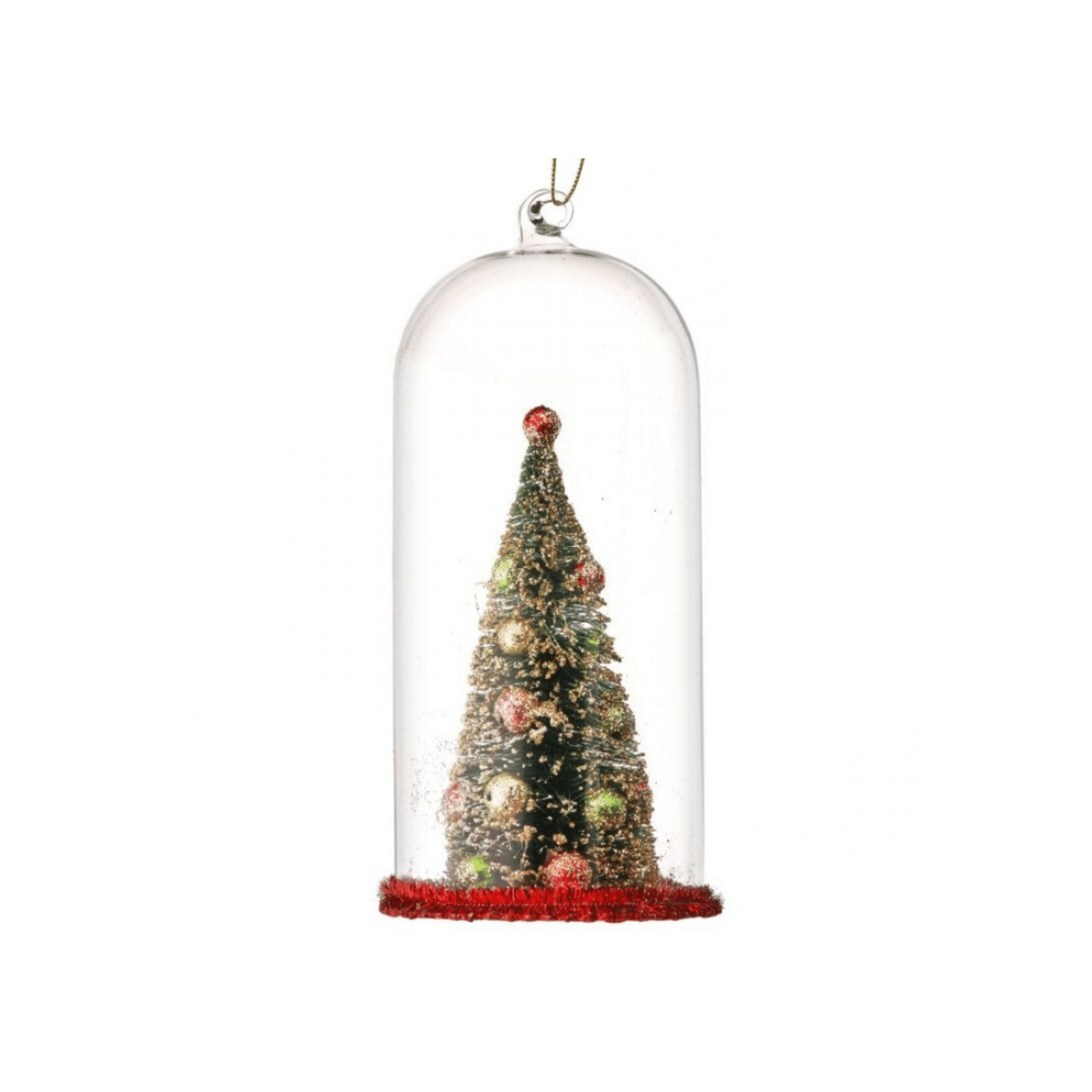 Bring a touch of vintage charm to your tree with this delightful 7.5" glass dome ornament. Featuring a classic art deco tree design, it captures that nostalgic retro aesthetic perfectly. A timeless piece that adds character and warmth to any holiday display.