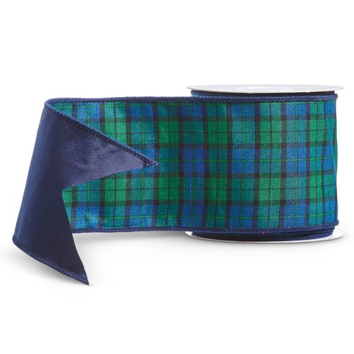 Elevate your holiday style with this eye-catching 4" x 10 yard Black Watch Plaid Ribbon. The vibrant blue and green tartan pattern adds instant festive flair to gift wrapping, stockings, and seasonal displays. A playful finishing touch that makes every present and decoration feel extra special.