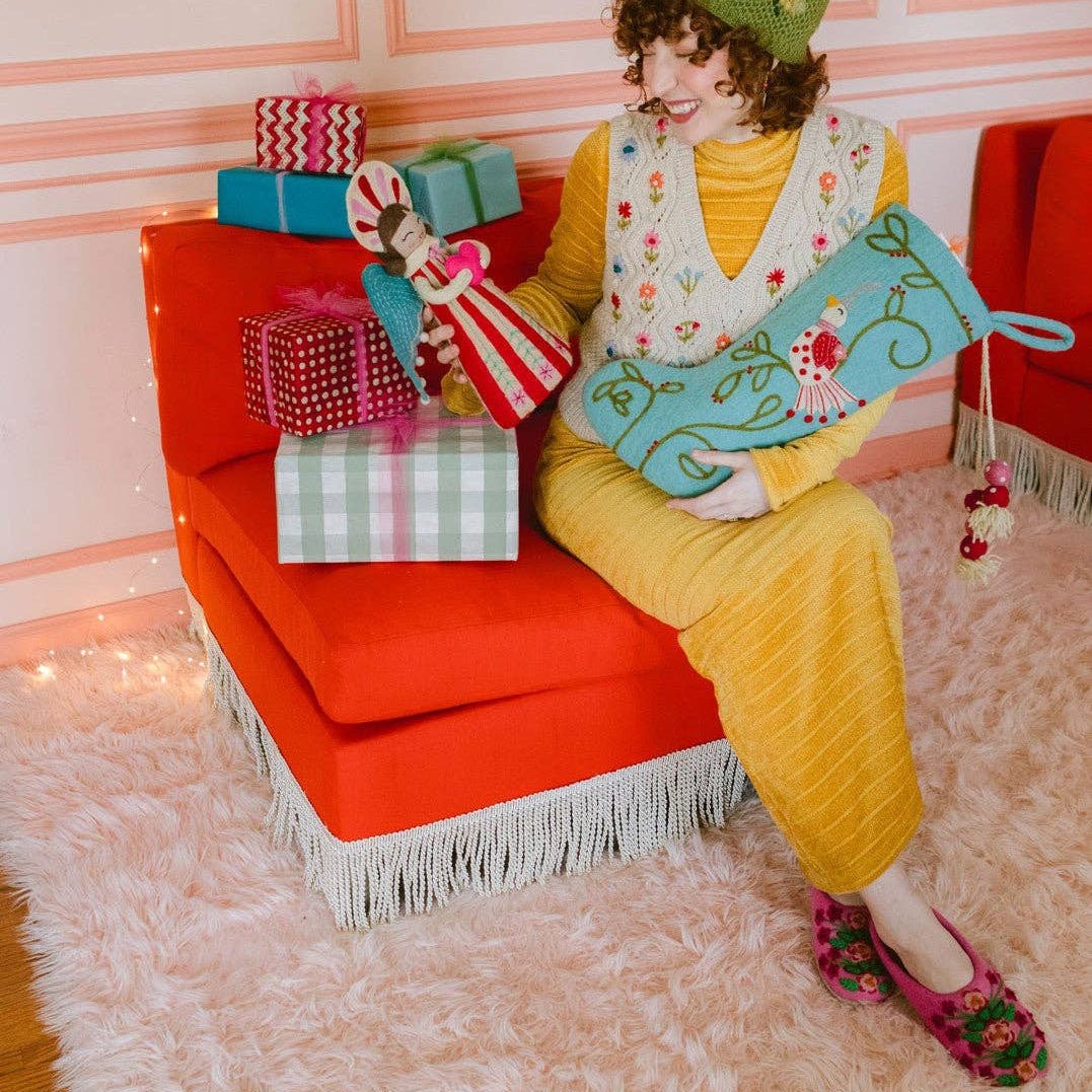 Add some holiday fun to your home with our Coo Coo Bird Stocking! This whimsical stocking features a hand-felted and embroidered coo coo bird design, perfect for adding a touch of cheer to your holiday decor. Handmade in Nepal from 100% wool felt. Stockings measure 19" in length.