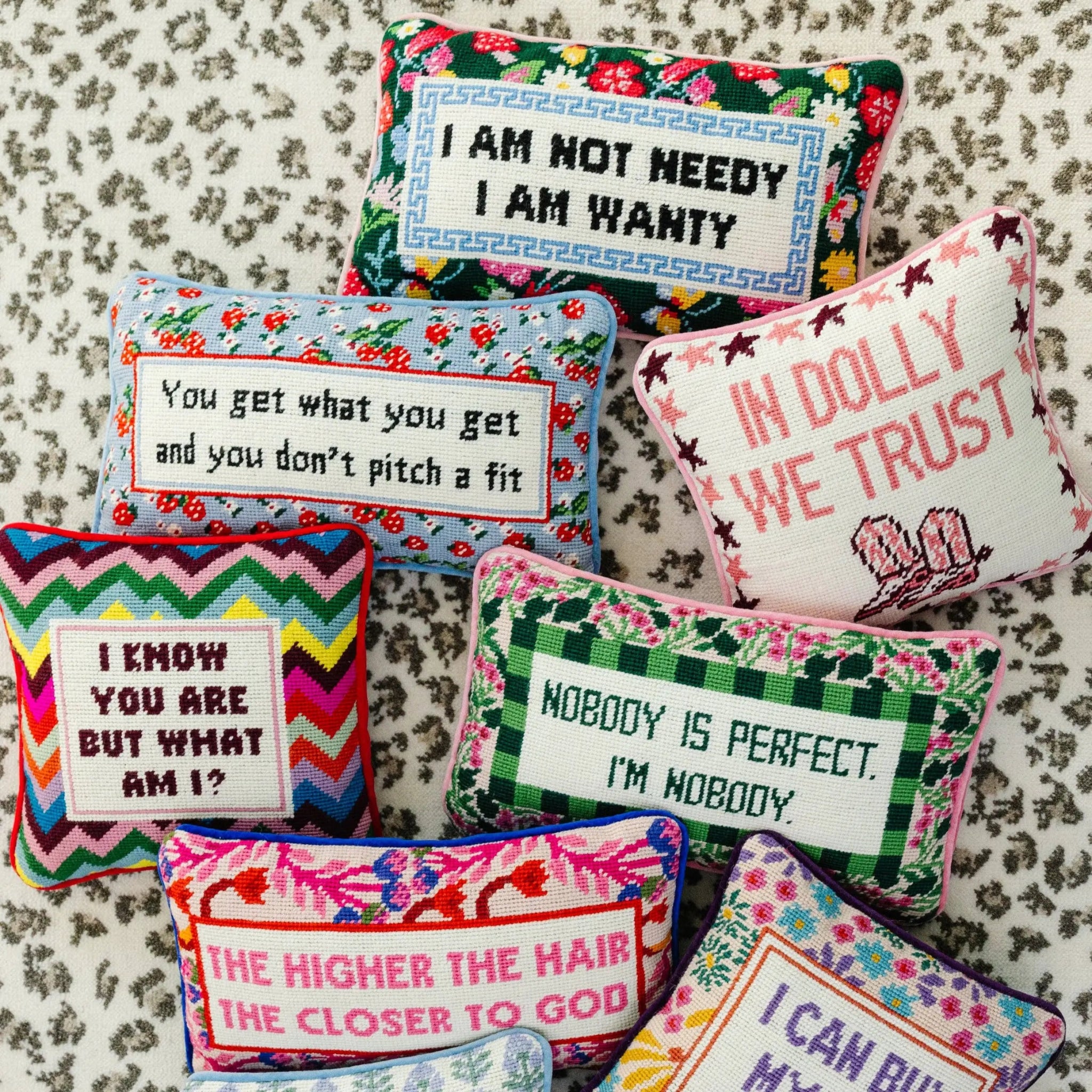 Make a statement with this charming-meets-chic needlepoint pillow. Embroidered and backed in luxe light pink velvet, we've revived this Southern staple with sayings that are sure to get a smile. They are guaranteed to spark joy and make the perfect gift!