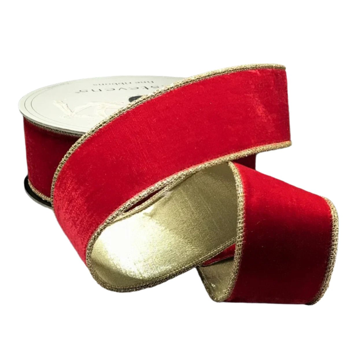 Red Velvet Glitter & Gold Trim Ribbon 2.5"x10yds